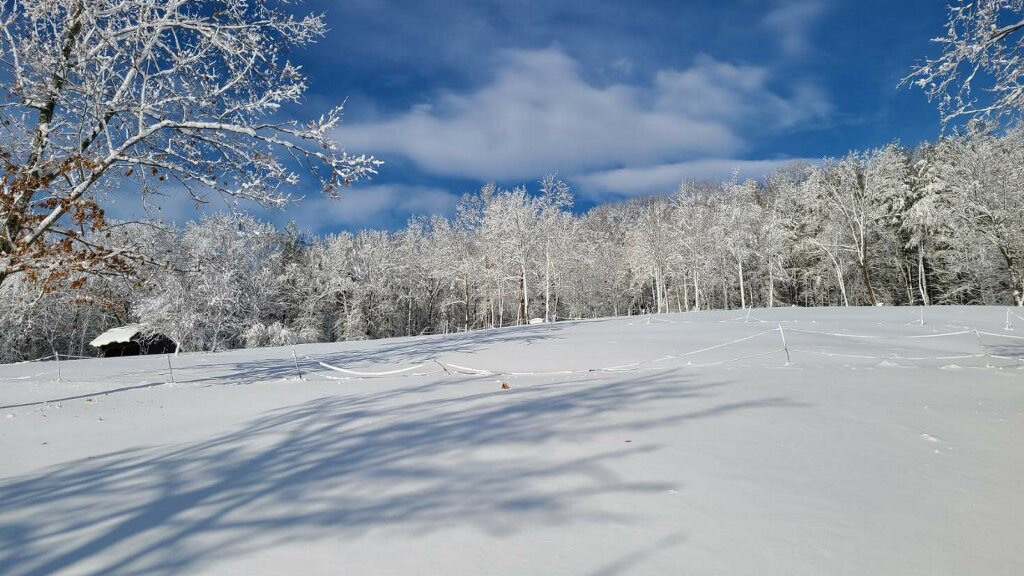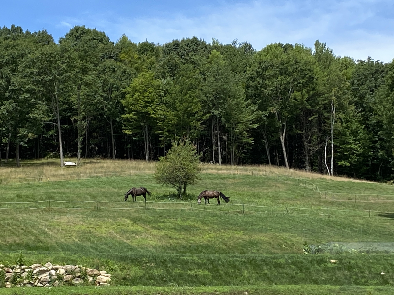 The farm offers a variety of turnout options for the horses. Small dirt paddocks with stone dust base close to the stable with a run in shed. Medium size grass fields and two large fields on grass slope for full day turnout.
